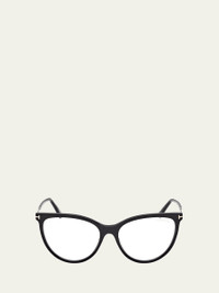 TOM FORD "FT5994BW" cateye eyeglasses Eye/bridge/temple (in mm): 5616140 Readytowear clear lenses enhanced by a blue coating, able to reduce the risks related to blue light exposure from LED screens Saddle nose bridge Signature T temples Thin, tapered arms Acetate Made in Italy