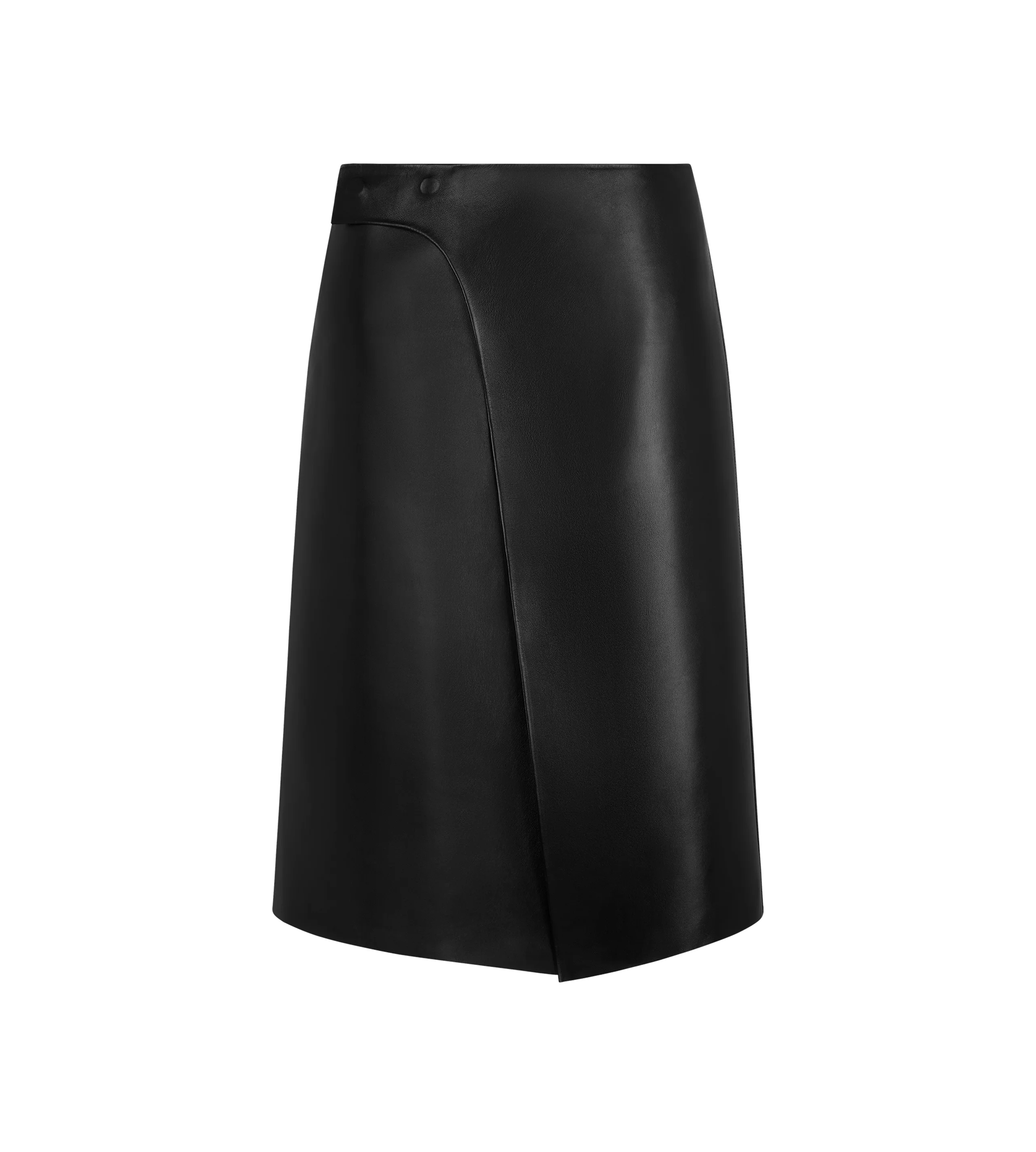 PRODUCT NO: GCL916-LEX427 A sculptural wrap skirt crafted in bonded Nappa leather with a shiny, lucid effect. The clean construction highlights TOM FORD’s modern approach to femininity, while the wrap silhouette lends sensuality and movement. Unlined. Composition: 100% Lamb Leather