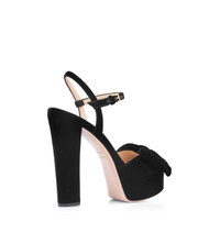 - ROUND TOE SHAPE - BLOCK HEEL - TOTAL HEEL HEIGHT 130 MM - PLATFORM 30 MM - PITCH 100 MM - BOW DETAIL - BUCKLE FASTENING ANKLE STRAP - LINING: NUDE LEATHER - INSOLE: NUDE LEATHER WITH BLACK HOT-STAMPED LOGO - SOLE: LEATHER - 100% VISCOSE - MADE IN ITALY