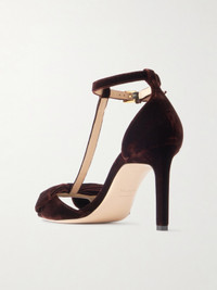 TOM FORD's 'Brigitte' sandals have a flattering T-bar strap and bow embellishments that give it a sweet, retro feel. They're made from plush velvet and set on 85mm heels.