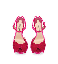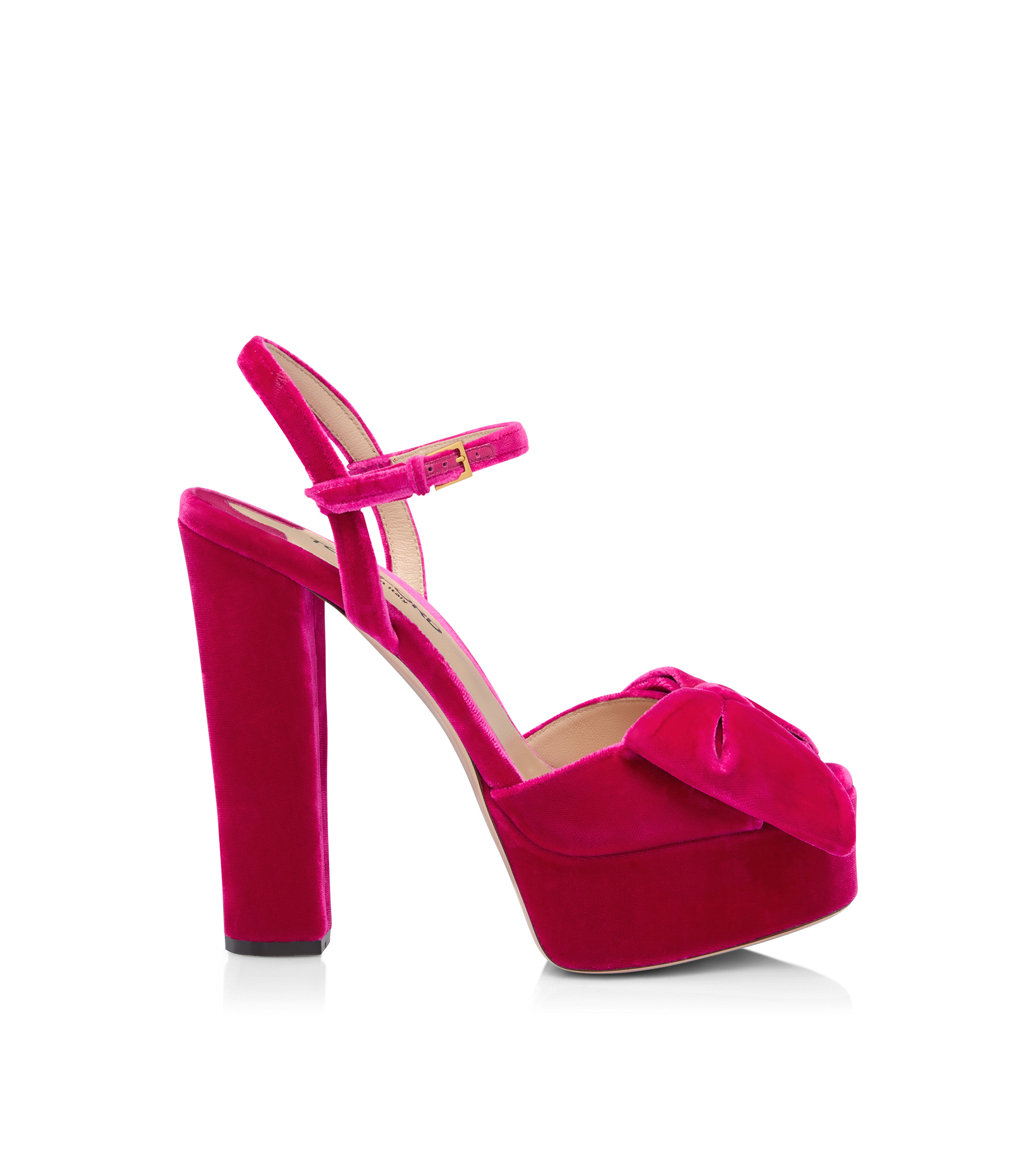 - ROUND TOE SHAPE - BLOCK HEEL - TOTAL HEEL HEIGHT 130 MM - PLATFORM 30 MM - PITCH 100 MM - BOW DETAIL - BUCKLE FASTENING ANKLE STRAP - LINING: NUDE LEATHER - INSOLE: NUDE LEATHER WITH BLACK HOT-STAMPED LOGO - SOLE: LEATHER - 100% VISCOSE - MADE IN ITALY
