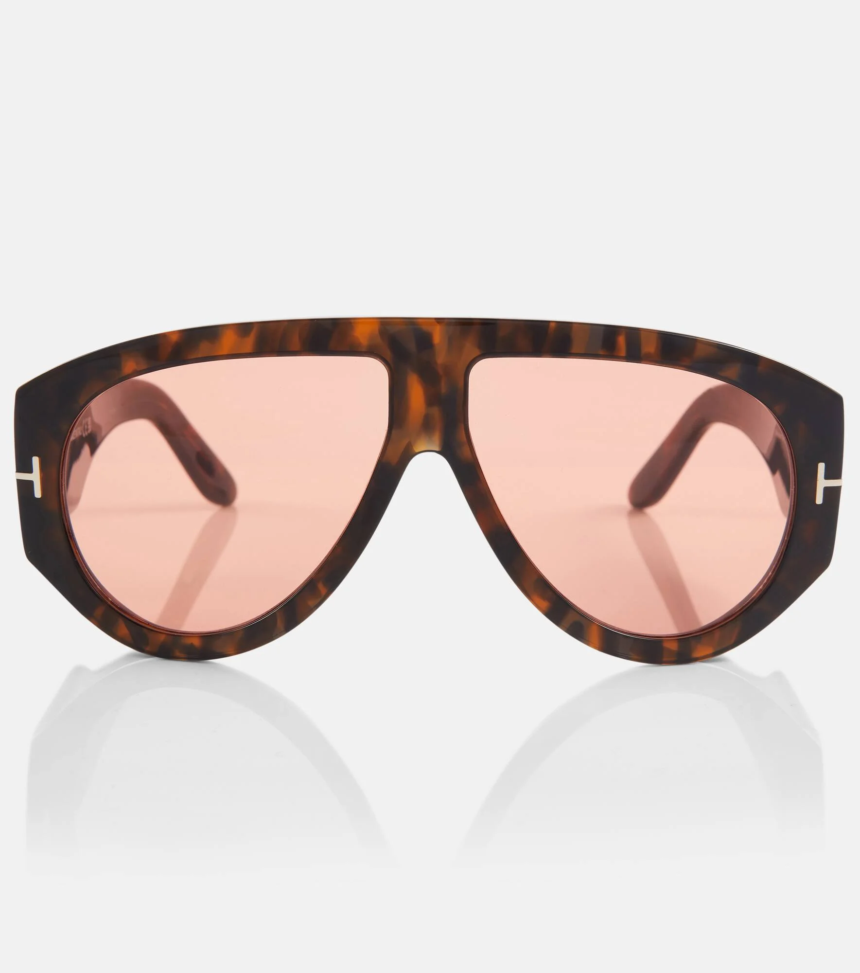 The Bronson style showcases Tom Ford’s dedication to timeless design. This glossy acetate style has UV-protective tinted lenses and metallic “T” detailing to the hinged arms. - material: acetate - lens colour: raspberry red, brown - frame colour: brown - tinted lenses - lens filter category 1 - Made in Italy - comes with cleaning cloth - comes with a case and presentation box - the color of the case may vary size & fit - Lens width: 60mm-2.35" - Bridge size: 12mm-0.45" - Earpiece length: 140mm-5.5"