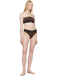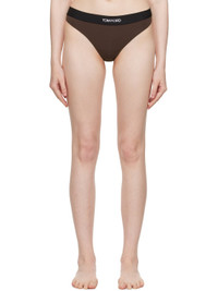 Stretch modal jersey thong. · Jacquard logo at elasticized waistband · Partial stretch jersey lining Supplier color: Darkest brown Body: 97% modal, 3% elastane. Trim: 82% polyester, 9% nylon, 9% elastane. Made in Italy 251076F081001