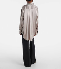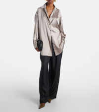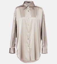 This Tom Ford shirt is a go-to for formal occasions if you want quality and sophistication. Crafted in Italy from silk-blend satin, this piece features a buttoned front and a loose silhouette for ultimate comfort. Product Details - Material: 94% silk, 6% elastane - Care instructions: dry clean - Made in Italy - Designer color name: Dark Silver - Item color: silver - Contains non-textile parts of animal origin - Closure: buttoned front - Collar: classic (Straight point) - Cuff: one button - Item number: P01053654 Size & Fit - True to size - Dropped shoulders - Designed for a loose fit - Non-stretchy fabric - Falls below the hip - The model seen in the picture is 178cm-5'10" and wearing a size IT 38