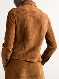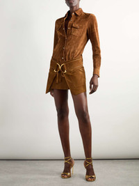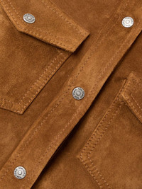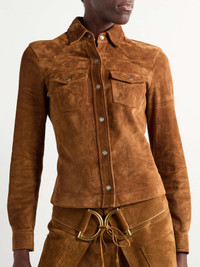 EDITORS'NOTES TOM FORD's shirt is a clear play on Western styles, with its camel suede construction, pointed yoke and silver-tone hardware. It's been made in Italy for a slim fit and has flap pockets and a neat collar. SIZE & FIT Model measurements: - Fits true to size, take your normal size - Designed for a slim fit - Supple, non-stretchy suede - Model is 177cm/ 5'10" and is wearing an IT 38 - Bust: 79cm/ 31" - Waist: 61cm/ 24" - Hip: 89cm/ 35" DETAILS & CARE - Camel suede (Calf) - Snap-fastenings through front - Specialist clean