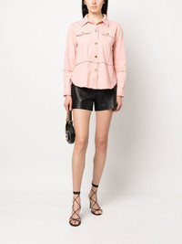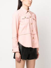 button-front denim shirt rose pink cotton classic collar front button fastening long sleeves front flap pockets curved hem Made in Italy Composition Cotton 100% SIZE & FIT Model measurements Height 5 ft 10 in(1.78 m) Bust/Chest 31.49 in(80 cm) Hips 36.22 in(92 cm) Waist 25.59 in(65 cm) FittingInformation This piece fits true to size. We recommend you get your regular size Cut for a loose fit Made with a mid-weight non-stretch fabric Washing instructions Machine Wash