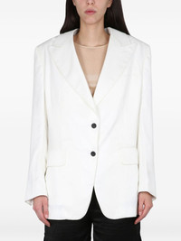 buttoned blazer Highlights - White - Button fastening - Front flap pockets - Long sleeves - Buttoned cuffs - Peak lapels Made in Italy Composition Viscose 100% Washing instructions Read Manufacturer Guidelines