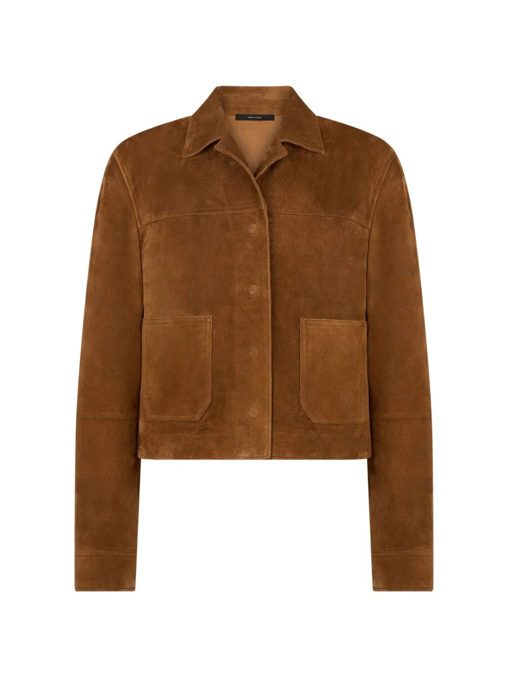 buttoned-up suede jacket Highlights - Brown - Front button fastening - Notched collar - Front flap pockets - Long sleeves - Straight hem Made in Italy Composition Calf Leather 100% Washing instructions Read Manufacturer Guidelines