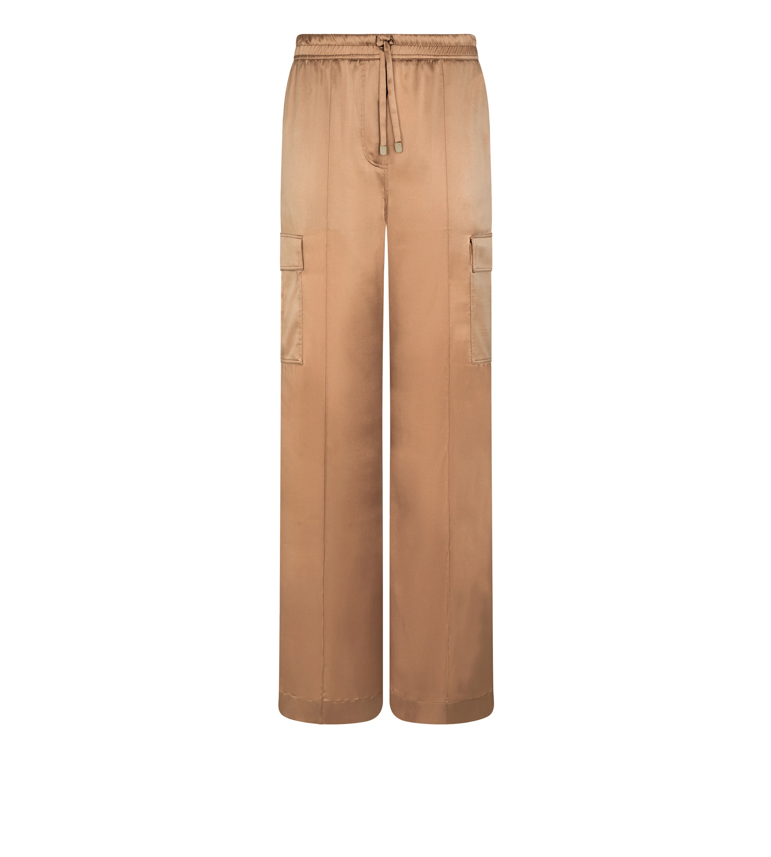 - CARGO PJ PANTS - ELASTICATED WAISTBAND - SLANTED SIDE POCKETS - PATCH POCKETS ON THE BACK - TONAL COULISSE WITH TF LEATHER ENDING - PINTUCK IN THE CENTRE OF THE FRONT AND BACK LEG - TOM FORD LABEL ON BACK POCKET - CRAFTED IN STRETCH SILK SATIN - 94% SILK 6% ELASTANE - MADE IN ITALY