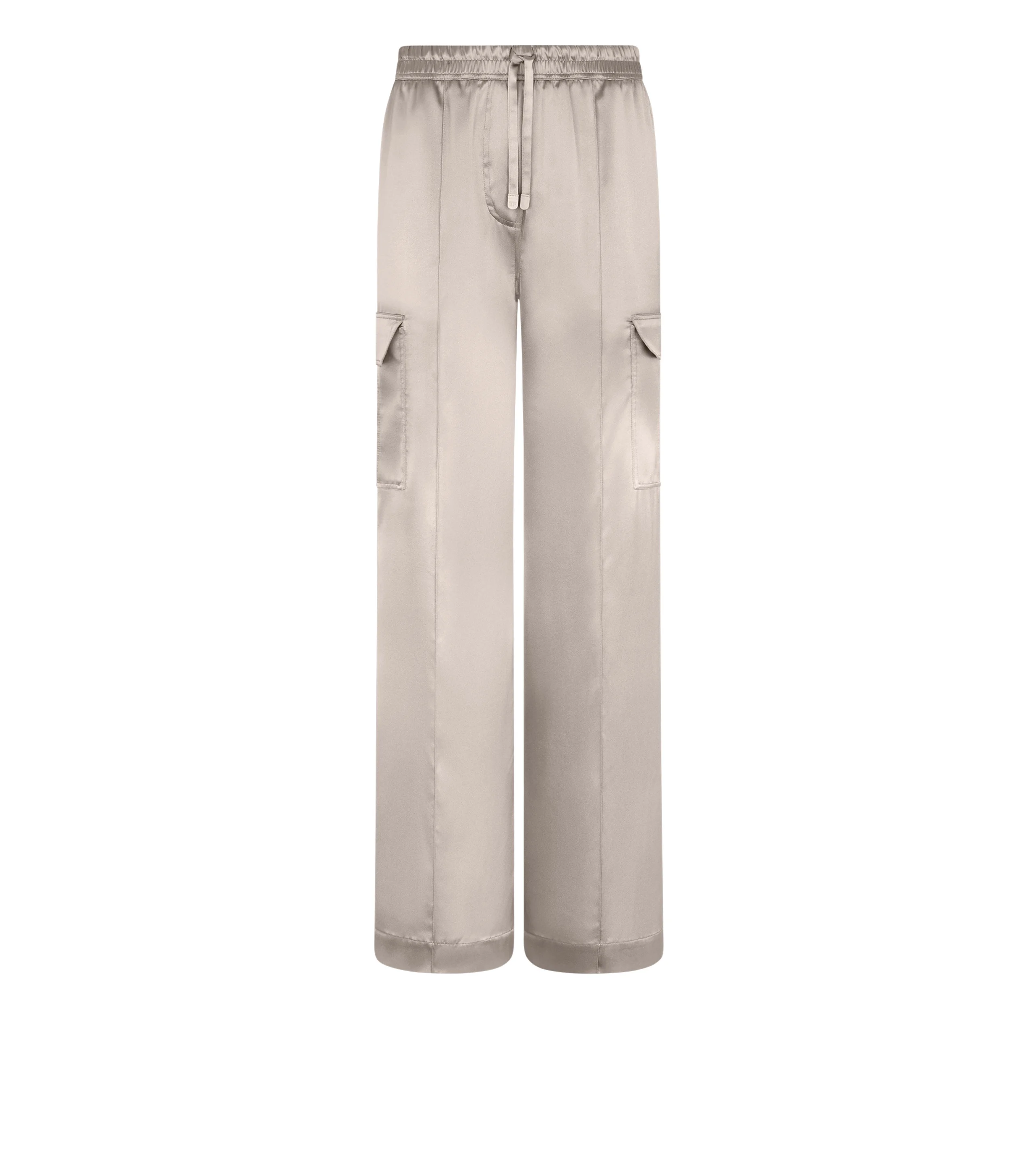 - CARGO PJ PANTS - ELASTICATED WAISTBAND - SLANTED SIDE POCKETS - PATCH POCKETS ON THE BACK - TONAL COULISSE WITH TF LEATHER ENDING - PINTUCK IN THE CENTRE OF THE FRONT AND BACK LEG - TOM FORD LABEL ON BACK POCKET - CRAFTED IN STRETCH SILK SATIN - 94% SILK 6% ELASTANE - MADE IN ITALY