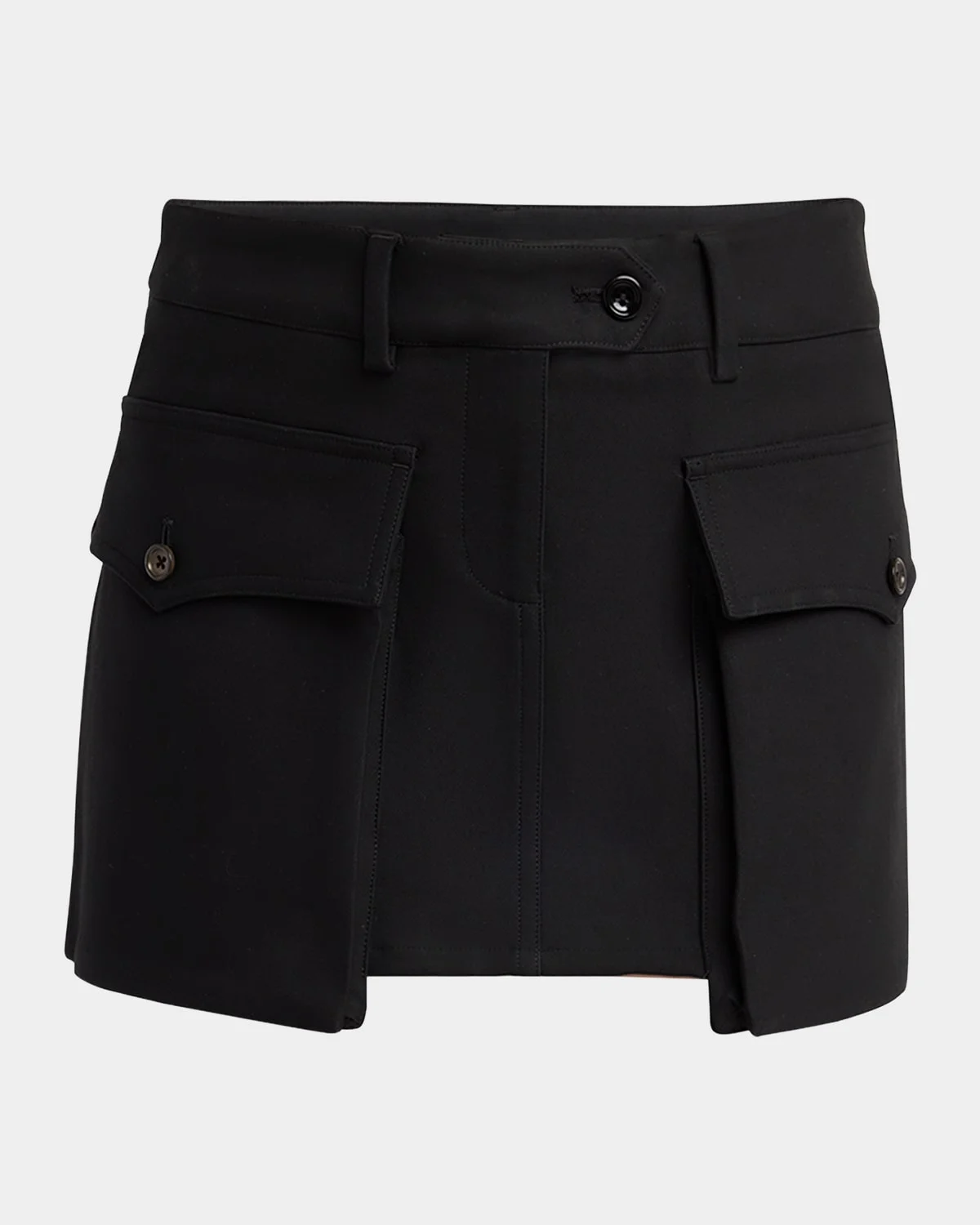 TOM FORD mini skirt features cargostyle pockets at the sides Midrise Button/zip fly; belt loops Hem falls above the knee Skirt falls straight from hip to hem Cotton/motherofpearl/elastane Made in Italy