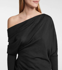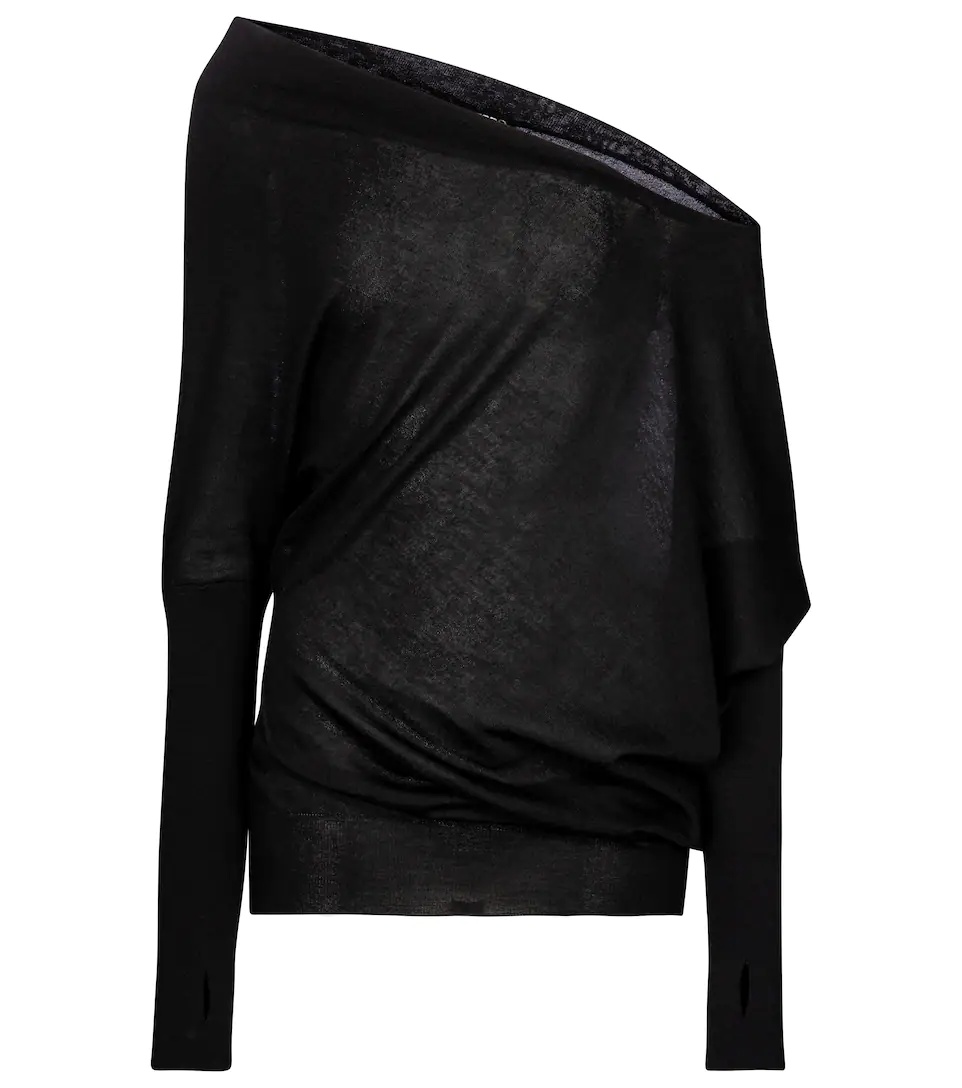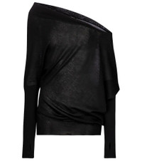 Tom Ford lends sensuality to your sweater roster with this all-black design. Made from a premium blend of cashmere and silk, it sits off-shoulder but fits loosely through the bodice for the perfectly draped silhouette. Note the extra-long sleeves with thumbholes that mean they can be pulled down over the fingertips. Product Details - Material: 70% cashmere, 30% silk - Care instructions: dry clean - Made in Italy - Designer color name: Black - Item number: P00545813 Size & Fit - True to size - Off-the-shoulder - Designed for a loose fit - Falls to the hip - The model seen in the picture is 178cm-5'10" and wearing a size XS
