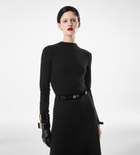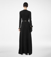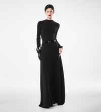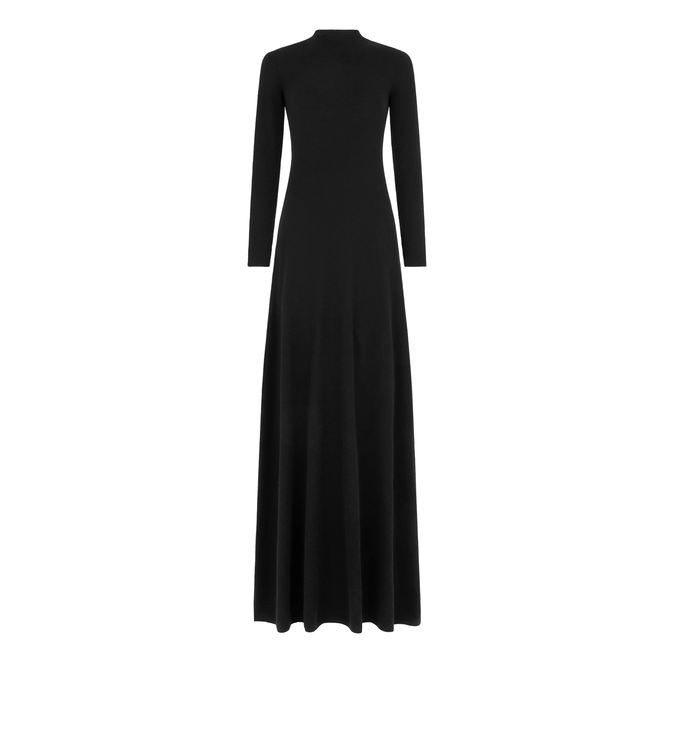 - ARCHITECTURAL CREWNECK COLUMN DRESS - LONG SLEEVES - INVISIBLE ZIP AT SHOULDER - VOLUMINOUS HEM - FLOOR LENGTH - CRAFTED IN ONE PLY FULL NEEDLE FINE CASHMERE SILK18GG - 69% CASHMERE 29% SILK 1% POLYAMIDE 1% ELASTANE