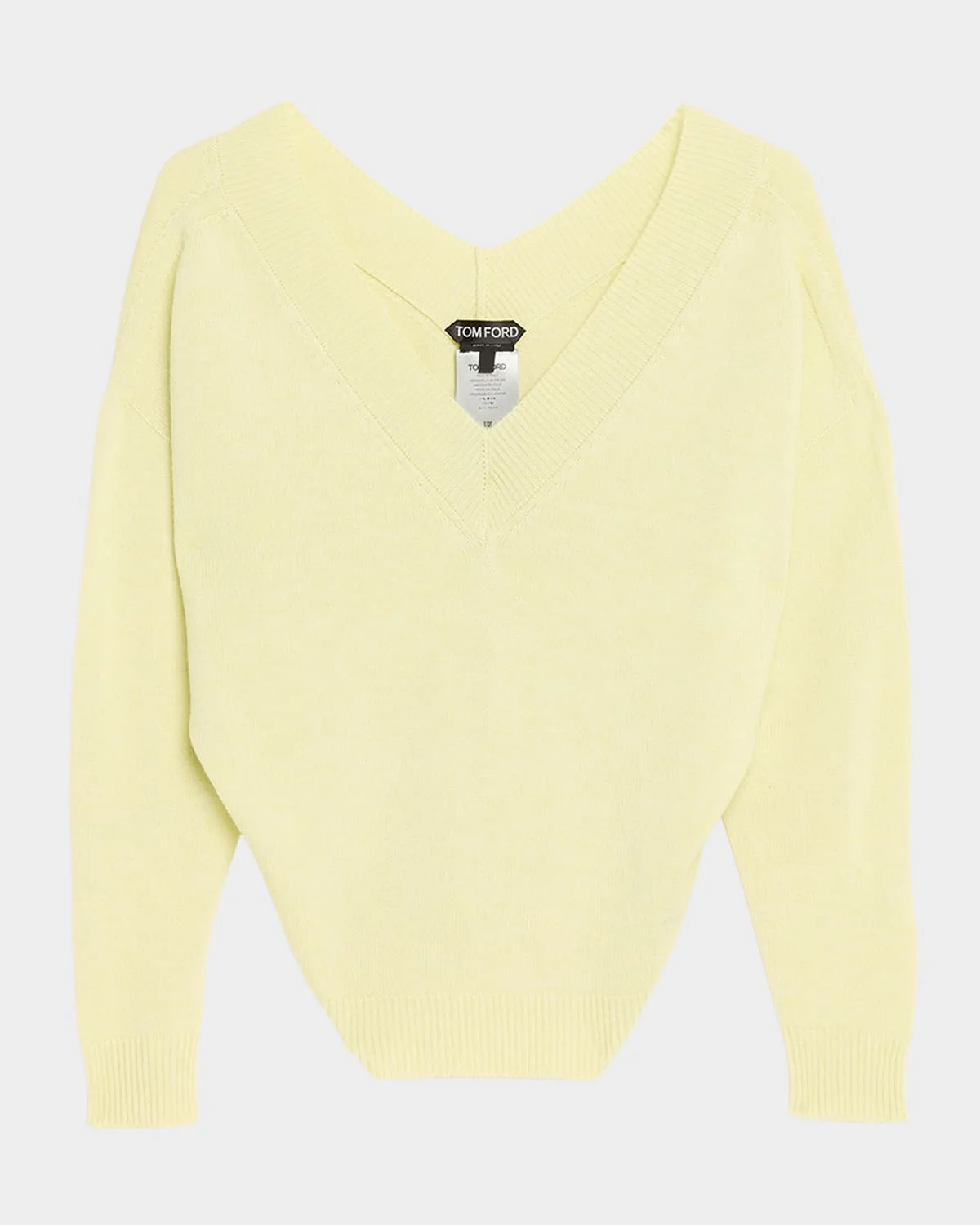 Crafted from soft cashmere-blend knit, this sweater from TOM FORD features a wide V neckline that falls off the shoulder & nbsp; Off-the-shoulder neckline Long sleeves Drop shoulders Loose fit Hip length Ribbed cuffs and hem Pullover style Wool/polyester/cashmere Made in Italy