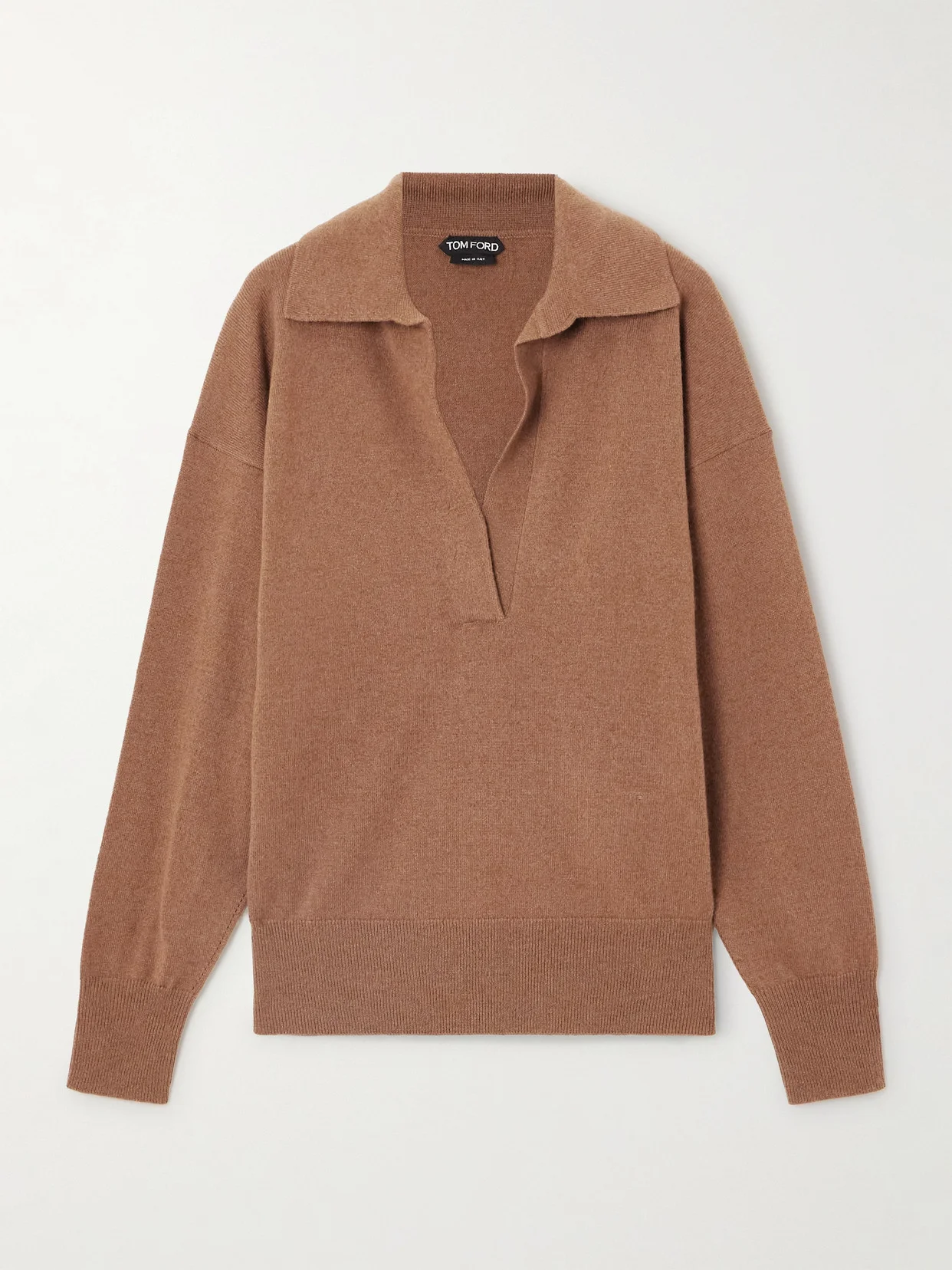 TOM FORD's polo sweater pairs a timeless design with a neutral colorway, making it endlessly versatile and easy to style. It's made from soft, insulating cashmere with tapered edges and dropped shoulder seams.