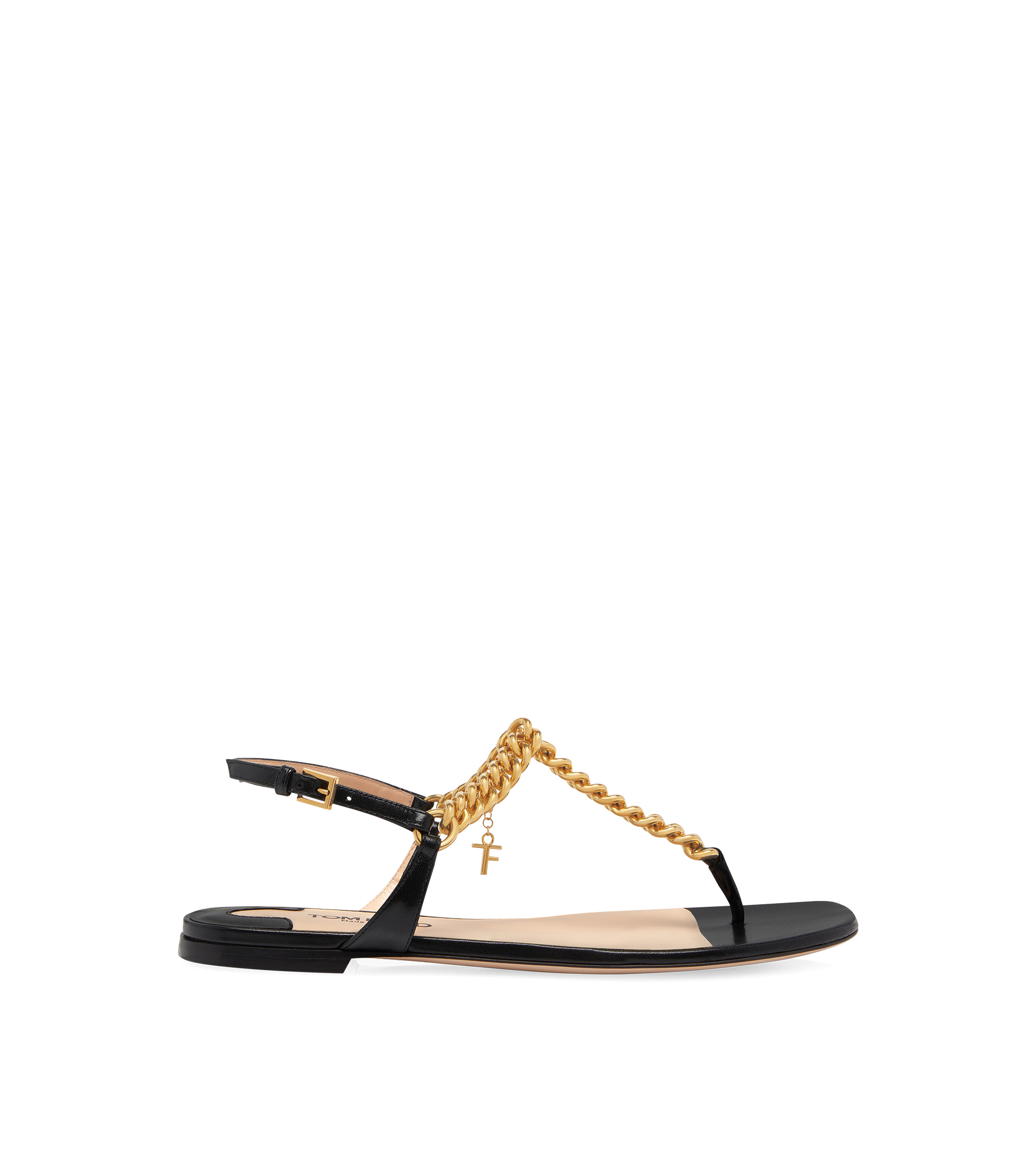 - SQUARE TOE SHAPE - 05 MM STACKED LEATHER HEEL - GOURMETTE CHAIN DETAIL - TF CHARM - BUCKLE FASTENING STRAP - LINING: NUDE LEATHER - INSOLE: NUDE LEATHER WITH BLACK HOT-STAMPED LOGO - SOLE: LEATHER - 100% GOATSKIN