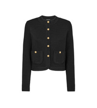 - KNITTED CHASSEUR JACKET - KNITTED TRIMS ALL AROUND THE EDGES - PATCH POCKETS - DOME BUTTONS ALONG FRONT OPENING, POCKETS AND CUFFS - CRAFTED IN COMPACT VISCOSE - 7 GAUGE - 93% VISCOSE 7% POLYAMIDE - MADE IN ITALY
