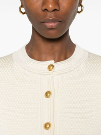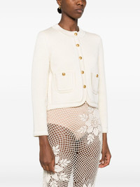 chasseur cardigan Highlights - Light beige - Front button fastening - Two front patch pockets - Decorative button detailing Made in Italy Composition Viscose 93%, Polyamide 7% SIZE & FIT Model measurements Height 5 ft 10 in(1.78 m) Bust/Chest 31.49 in(80 cm) Hips 37 in(94 cm) Waist 23.62 in(60 cm) FittingInformation Designed for a relaxed fit, this piece allows for comfort and movement when worn Made with a midweight knit, this piece offers some stretch Washing instructions Hand Wash