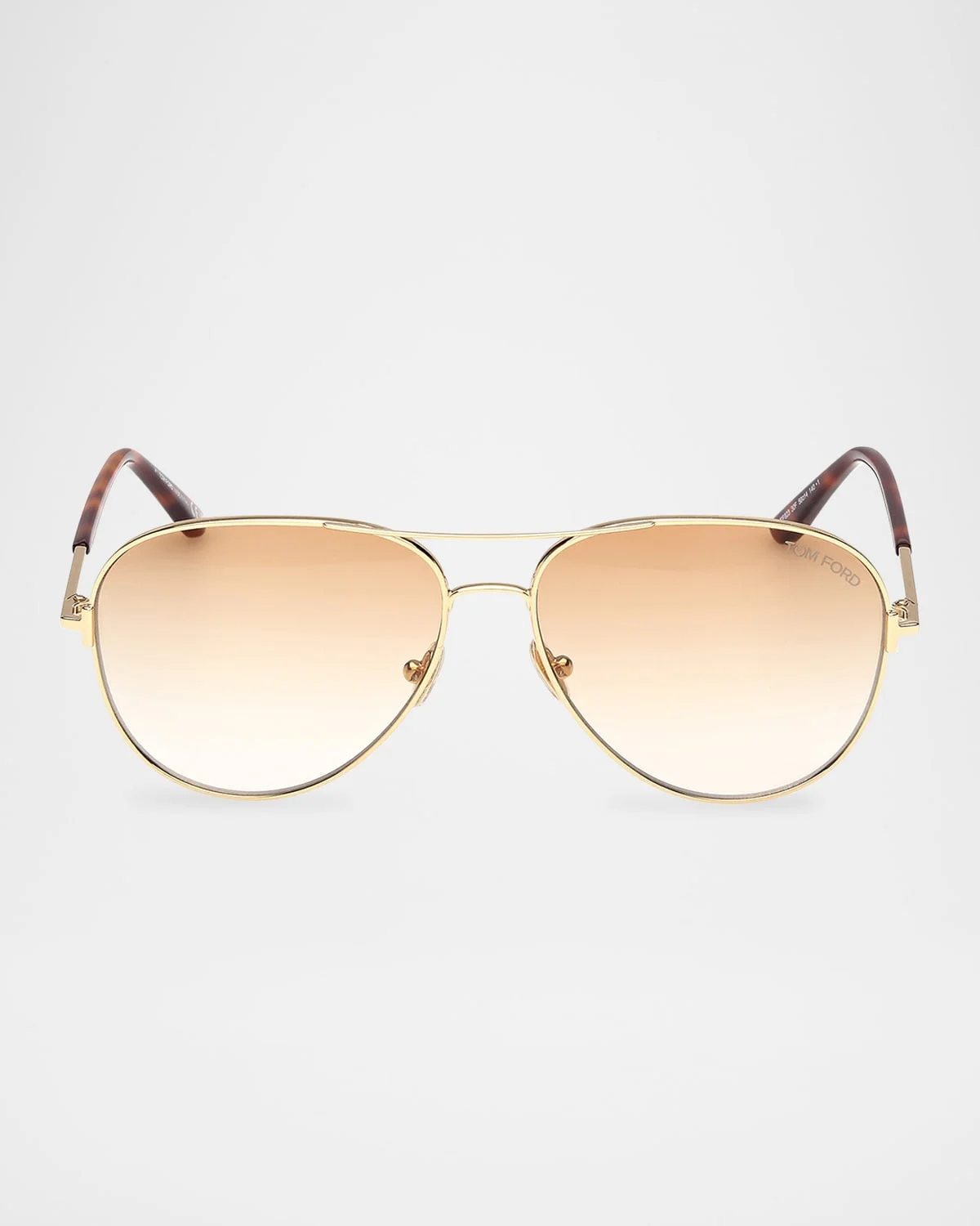 - TOM FORD "Clark" aviator sunglasses in metal - Lens/bridge/temple (in mm): 59-14-140 - Solid lenses; logo on corner - Sleek brow bar - Adjustable nose pads - Thin tapered arms - Capped earpieces - Spot clean - 100% UVA/UVB protection - Made in Italy - Proposition 65 warning for California residents