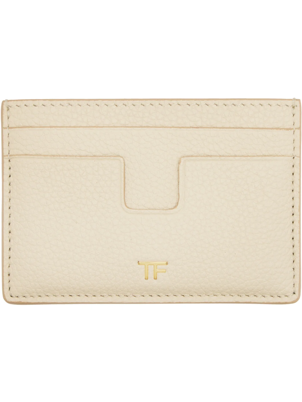 Pebble-grained calfskin card holder. · Inset logo hardware at face · Four card slots and central note slot · Gold-tone hardware · H2.75" x W4" Supplier color: Cream Calfskin. Made in Italy 252076F037002