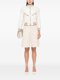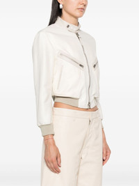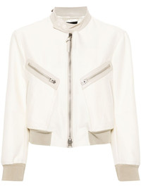 contrasting-trim jacket Highlights - Ecru - Virgin wool blend - Contrasting trim - Press-stud fastening collar - Long sleeves - Two zip-fastening chest pockets - Two side welt pockets - Satin lining - Ribbed cuffs and hem - Front two-way zip fastening Made in Italy Composition Outer: Bos Taurus 100%, Virgin Wool 90%, Viscose 84%, Polyamide 13%, Silk 10%, Elastane 3% Lining: Cotton 56%, Viscose 44% SIZE & FIT Model measurements Height 5 ft 11 in(1.8 m) Bust/Chest 33.07 in(84 cm) Hips 37.4 in(95 cm) Waist 25.19 in(64 cm) FittingInformation Designed for a relaxed fit, this piece allows for comfort and movement when worn The ribbed hem offers a close, comfortable fit Made from a midweight non-stretch fabric This piece fits true to size – take your usual size