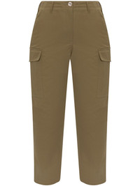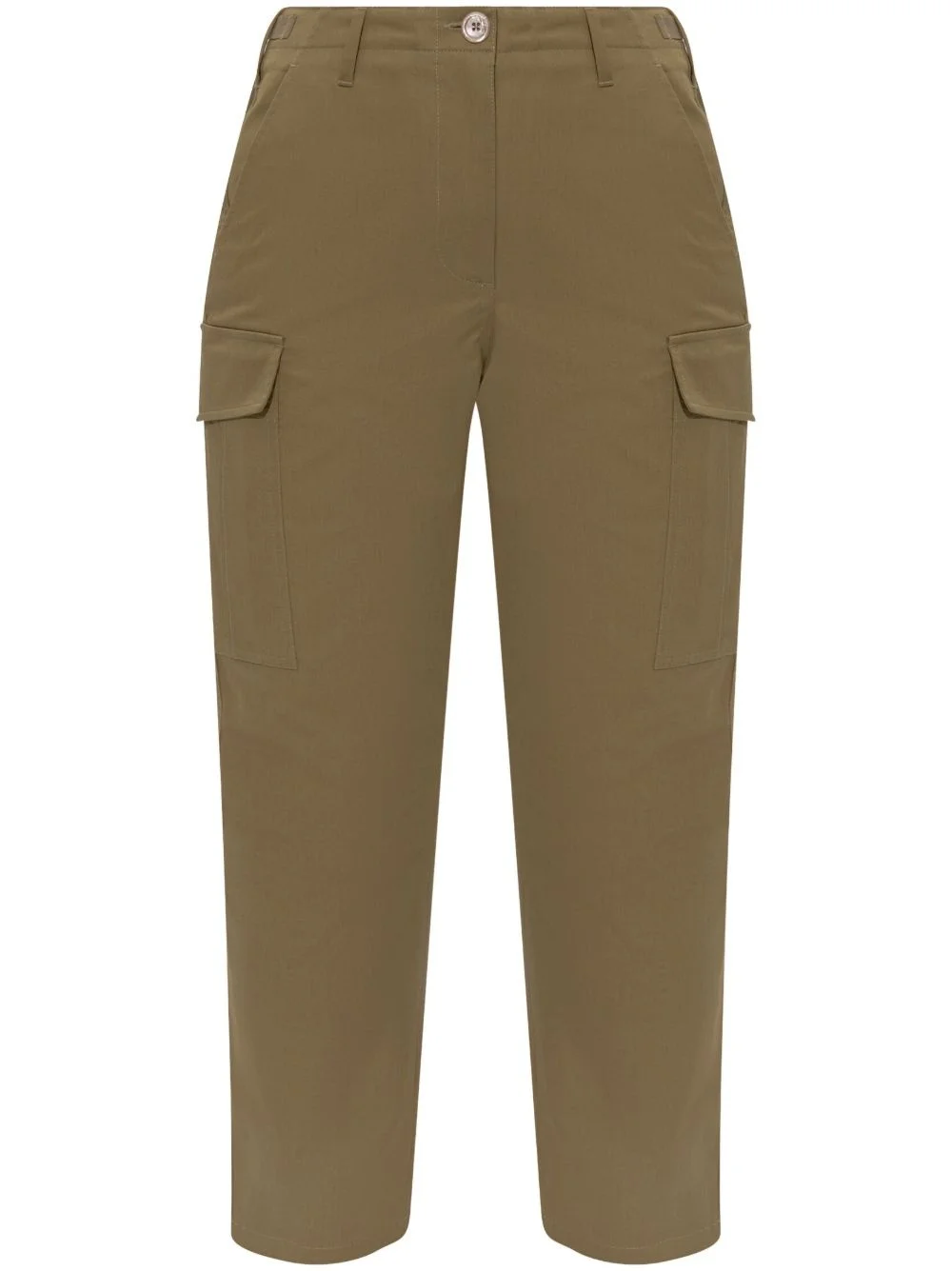 cotton trousers Highlights - Khaki - Front button fastening - Two side slit pockets - Two side cargo pockets - Two rear flap pockets Made in Italy Composition Cotton 98%, Elastane 2%