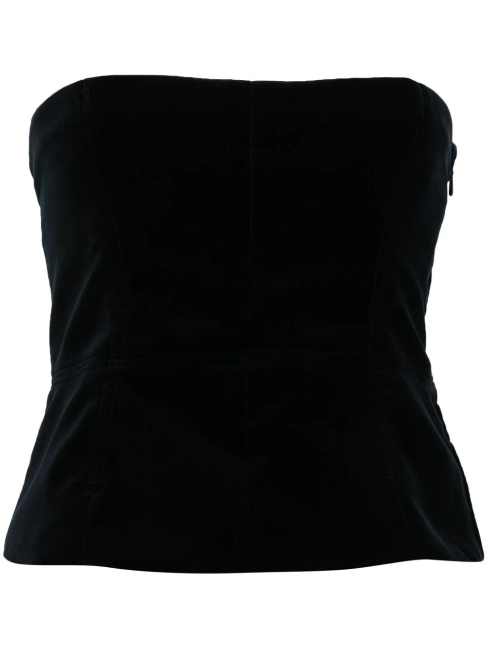 cotton velvet corset Highlights - Midnight blue - Cotton - Velvet - Strapless - Square neck - Moulded cups - Boned bodice - Full lining - Straight hem - Concealed side hook and zip fastening Made in Italy Composition Lining: Silk 100%, Polyamide 81%, Elastane 19% Outer: Cotton 100% SIZE & FIT Model measurements Height 5 ft 10 in(1.77 m) Bust/Chest 32.28 in(82 cm) Hips 35.03 in(89 cm) Waist 25.19 in(64 cm) FittingInformation Designed for a close fit throughout The moulded cups offer shape and support Made from a midweight fabric This piece fits true to size – take your usual size