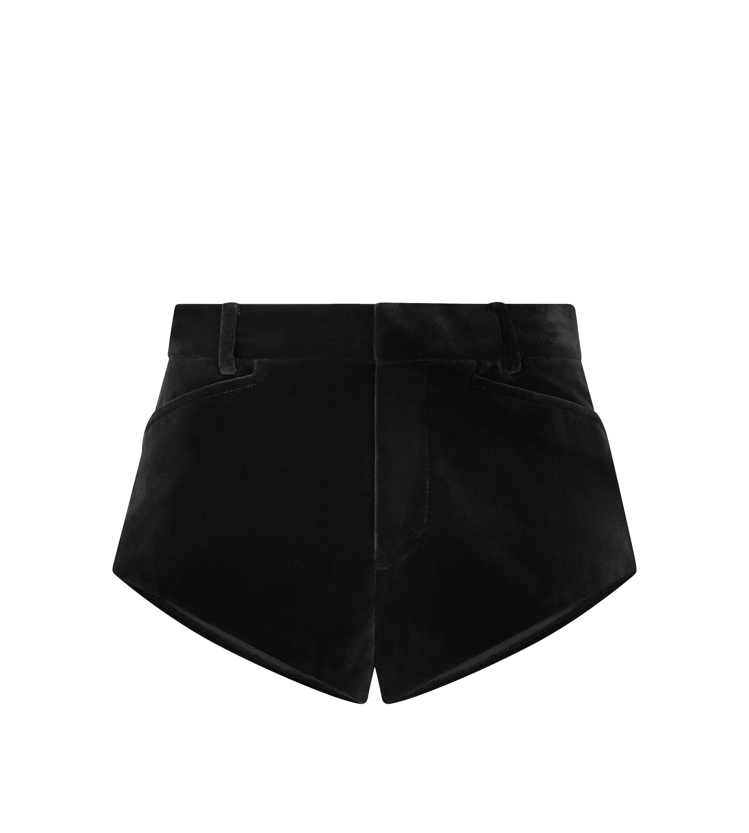 - TAILORED MINI SHORTS - SIGNATURE TAILORING CONSTRUCTION - LOOPED WAISTBAND WITH HOOK AND BAR CLOSURE - FRONT FROGMOUTH POCKETS - WELT POCKETS ON THE BACK - SIGNATURE TOM FORD HORN BUTTON - FULLY LINED - CRAFTED IN COTTON VELVET - 100% COTTON