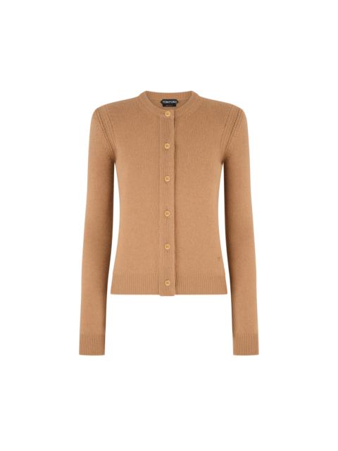 - KNITTED CREWNECK CARDIGAN - SHOULDER PADS - RIBBED NECKLINE, CUFFS AND BOTTOM - TF EMBROIDERY LOGO - MOTHER OF PEARL BUTTONS - CRAFTED IN SOFT CASHMERE - GAUGE 7 - 100% CASHMERE