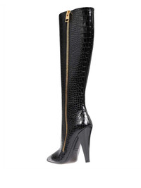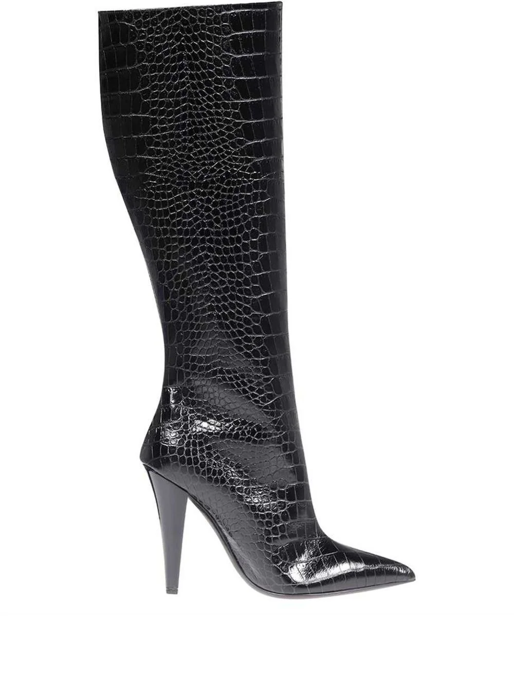 110mm leather high boots Highlights - Black - Side zip fastening - Pointed toe - High stiletto heel - Embossed crocodile effect Made in Italy Composition Outer: Leather 100% Sole: Leather 100% Lining: Leather 100% SIZE & FIT Measurement HEEL 4.33 in(11 cm)