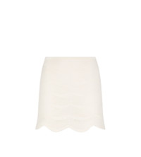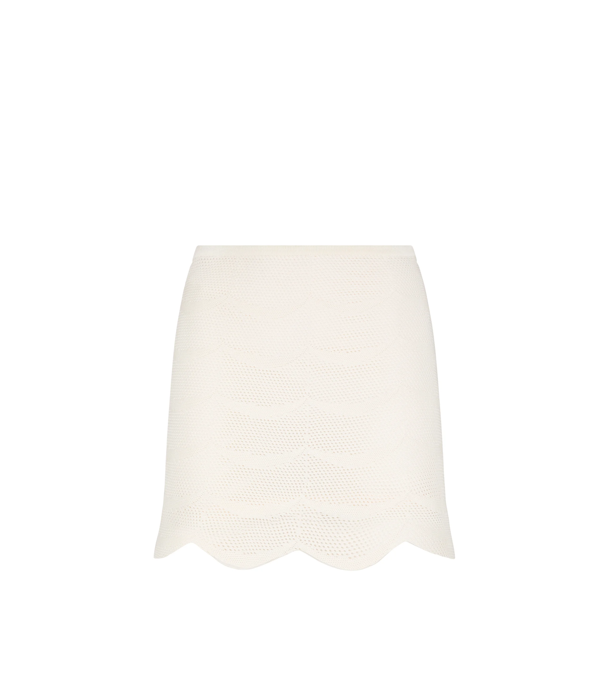 - KNITTED MINI SKIRT - GEOMETRIC HALF MOON PATTERN - CRESCENT CUT DETAILS AT BOTTOM HEM - DETACHABLE VISCOSE LINING - INVISIBLE SIDE ZIP CLOSURE - CRAFTED IN CRESCENT SILK COTTON MESH - GAUGE 14 - 57% COTTON 43% SILK