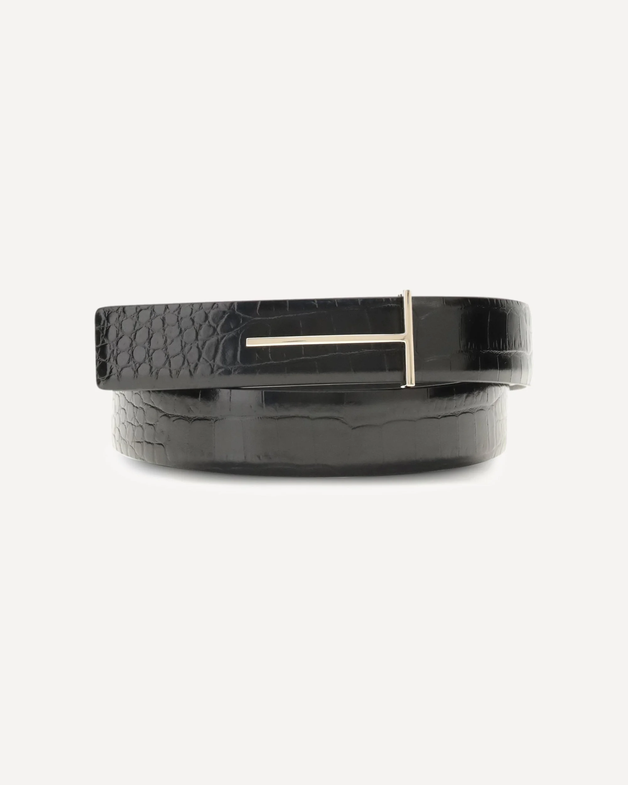 The crocodile-effect Belt by Tom Ford blends refined structure and essential design. Crafted from embossed goatskin, it features a buckle that frames the waist with precise sophistication. A versatile piece that reflects the brand’s unmistakable sense of elegance. DETAILS - Sku: WB338LCL395P_NAA - Season: SS26 - Dimension: 3 - Composition: GENERAL 100% Goatskin/hircus Goatskin - MADE IN ITALY