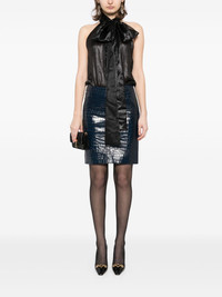 leather skirt Highlights - Navy blue - Rear zip fastening - Two side inset pockets - Embossed crocodile effect Made in Italy Composition Outer: Lamb Skin 100% Lining: Acetate 73%, Silk 27% SIZE & FIT Model measurements Height 5 ft 10 in(1.78 m) Bust/Chest 24.4 in(62 cm) Hips 35.43 in(90 cm) Waist 31.88 in(81 cm) FittingInformation This mini-length skirt is intended to be worn just below the waist Made from a midweight non-stretch fabric