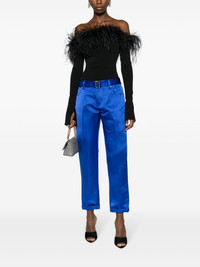 cropped silk satin trousers Highlights - Cobalt blue - Silk satin - Logo-print strap - Belted waist - Slide-lock fastening - Cropped - Two rounded pockets to the sides - Two rear patch pockets - Turn-up hem Made in Italy Composition Lining: Viscose 54%, Polyester 46% Outer: Silk 100% SIZE & FIT Model measurements Height 5 ft 10 in(1.78 m) Bust/Chest 31.49 in(80 cm) Hips 37 in(94 cm) Waist 23.62 in(60 cm) FittingInformation Designed for a straight-leg fit, these trousers allow for a close fit at the waist and an unrestricted, comfortable fit over the leg The belt offers adjustability for fitted preferences Made from a midweight non-stretch fabric This piece fits true to size – take your usual size Washing instructions Dry Clean Only