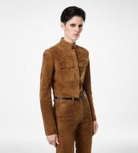 PRODUCT NO: CSL795-LEX417 A cropped officer jacket in rich lamb suede, balancing sharp structure with TOM FORD’s signature precision. Composition: 100% Lamb Leather Lining: 100% Viscose Made in Italy