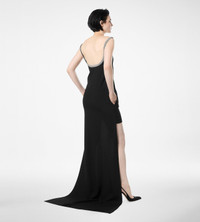 PRODUCT NO: AB3625-SDE517 An asymmetric crepe satin cocktail dress with sculpted crystal-chain embroidery and a high-low silhouette. Fully lined for flawless TOM FORD drape. Embroidery: PVC, Polyester, Silk, Polyamide Base: 73% Acetate, 27% Viscose Lining: 100% Silk Alterations are complimentary in store, whether you purchase online or in person. Contact our Customer Care to reserve your fitting appointment. Made in Italy