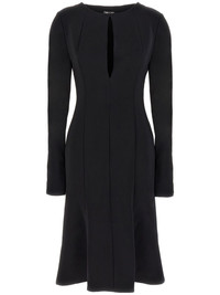 cut-out dress Highlights - Black - Cut-out detailing - Rear zip fastening - Round neck - Long sleeves - Flared skirt - Mid-length Made in Italy Composition Outer: Viscose 97%, Spandex/Elastane 3% Lining: Silk 92%, Elastane 8%