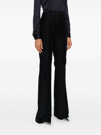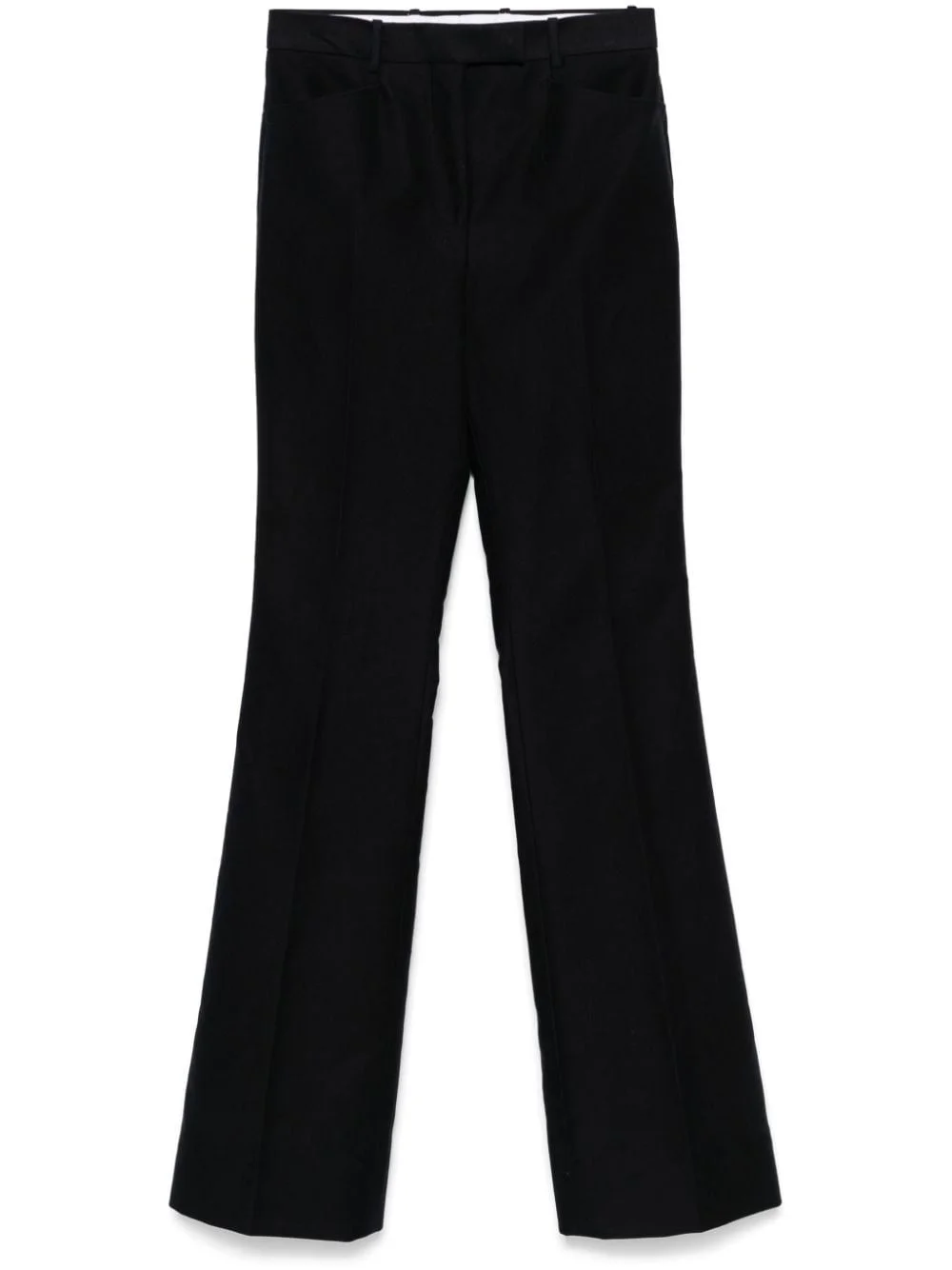 cotton trousers Highlights - Navy blue - Cotton - Twill weave - Concealed front button, hook and zip fastening - High-waisted - Belt loops - Slip pockets to the sides - Pressed crease - Two rear button-fastening jetted pockets - Flared leg Made in Italy Composition Lining: Cupro 59%, Silk 41% Outer: Cotton 100% SIZE & FIT Model measurements Height 5 ft 10 in(1.78 m) Bust/Chest 33.07 in(84 cm) Hips 36.61 in(93 cm) Waist 24.8 in(63 cm) FittingInformation Designed with a flared hem, these trousers allow for a close fit at the waist with a slim fit over the leg and widening towards the hem Particularly long in length; consider your own measurements Made from a midweight non-stretch fabric