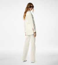 - WIDE FLARED PANTS - TOM FORD SIGNATURE TUCK BUTTON CLOSURE - PATCH POCKETS - TOM FORD EMBOSSED ALCANTRA LABEL ON BACK POCKET - ANTIQUE SILVER HARDWARE - TF LOGO EMBROIDERY DETAIL - CRAFTED IN STRETCH TWILL DENIM - 99% COTTON 1% ELASTANE - MADE IN USA