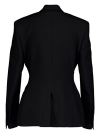 double-breasted blazer Highlights - Black/rose pink - Wool-silk blend - Peak lapels - Contrasting lapels - Double-breasted button fastening - Shoulder pads - Long sleeves - Buttoned cuffs - Jetted chest pocket - Two front jetted pockets - American rear vent - Full lining Made in Italy Composition Wool 83%, Silk 17% Washing instructions Dry Clean Only