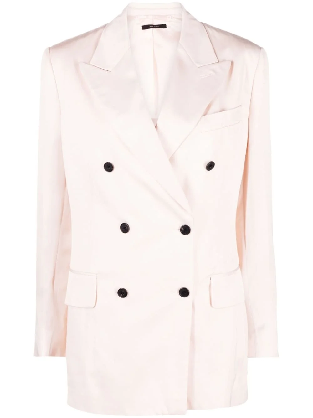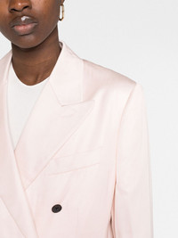 double-breasted blazer This blazer from TOM FORD embodies the label's penchant for sharp tailoring. It comes in pink with notch lapels, structured shoulders and a double-breasted front. Highlights - Light pink - Double-breasted button fastening - Classic lapels - Two front flap pockets - Long sleeves - Straight hem Made in Italy Composition Outer: Viscose 100% Lining: Viscose 54%, Polyester 46% SIZE & FIT Model measurements Height 5 ft 11 in(1.8 m) Bust/Chest 32.67 in(83 cm) Hips 36.22 in(92 cm) Waist 24.4 in(62 cm) FittingInformation Designed for a slim fit that sits just away from the body offering a close yet comfortable fit Made from a midweight non-stretch fabric This piece fits true to size – take your usual size Measurement BUST 40 in(101.6 cm) LENGTH 27 in(68.6 cm) WAIST 35.98 in(91.4 cm) SLEEVE LENGTH 22.99 in(58.4 cm) Washing instructions Dry Clean Only