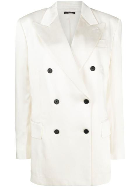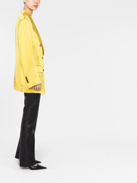 double-breasted satin blazer This double-breasted blazer illustrates TOM FORD’s prowess for tailoring with a twist. Boasting traditional elements, such as peak lapels and buttoned cuffs, it’s crafted to a lustrous satin finish and rendered in a vivid yellow hue. Made in Italy Composition Outer: Acetate 65%, Viscose 35% Lining: Viscose 54%, Polyester 46% SIZE & FIT Model measurements Height 5 ft 10 in(1.77 m) Bust/Chest 30.31 in(77 cm) Hips 34.25 in(87 cm) Waist 22.83 in(58 cm) Measurement LENGTH 31.1 in(79 cm) SLEEVE LENGTH 24.4 in(62 cm) FittingInformation Designed to be unstructured, offering a loose fit throughout Made from a midweight non-stretch fabric This piece fits true to size – take your usual size Washing instructions Dry Clean Only