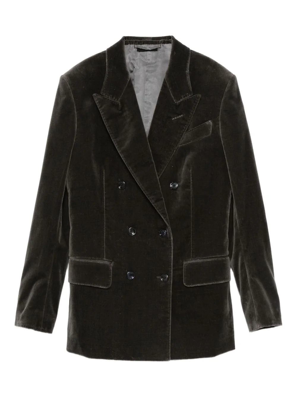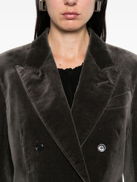 double-breasted velvet jacket Highlights - Grey - Velvet texture - Double-breasted closure - Long sleeves - Flap pockets Made in Italy Composition Outer: Cotton 98%, Elastane 2% Lining: Cupro 59%, Silk 41% SIZE & FIT Model measurements Height 5 ft 10 in(1.78 m) Bust/Chest 33.46 in(85 cm) Hips 36.22 in(92 cm) Waist 23.22 in(59 cm) Washing instructions Dry Clean Only