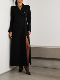 TOM FORD's coat illustrates the beauty in simplicity. It's been made in Italy from wool-boucle and has a double-breasted shape with concealed buttons. Size & Fit - Fits true to size, take your normal size - Those with broad shoulders may wish to take the next size up - Designed for a slim fit - Internal shoulder pads - Mid-weight, slightly stretchy fabric - Model is 177cm/ 5'10" and is wearing an IT 40 Model measurements: - Bust: 85cm/ 33.5" - Waist: 65cm/ 25.5" - Hip: 91cm/ 36" Details & Care - Black wool-boucle - Concealed button fastenings through double-breasted front - 100% wool; buttons: 100% horn (Buffalo); lining: 92% viscose, 8% elastane - Fully lined - Dry clean