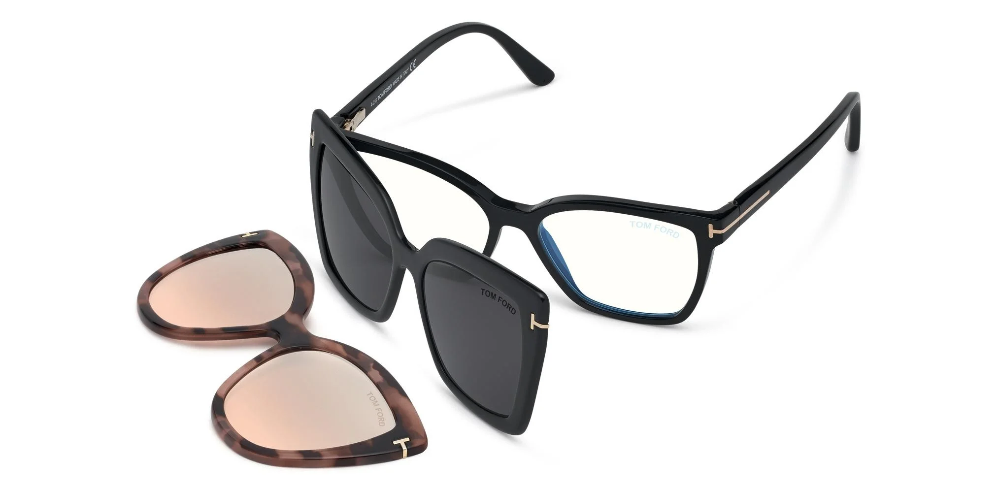 - Shiny acetate style with shiny metal 'T' logo on the temple. Stylish injected clip-ons. - SIZE: 53-15-140 - MADE IN ITALY