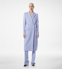PRODUCT NO: CP1645-FAX1567 Lightweight coat made of wool, double breasted with a peak lapel, and slightly curved sleeves that define the silhouette. The construction is elevated with completely handmade chest pocket, lapel buttonhole, and hand-stitched silk bar at the cuffs. It has self fabric covered buttons that run along the front and includes five kissing cuff buttons, one of which is longer, as in all TOM FORD designs. Finished with flap and two internal pockets, it also include a single vent and a half lined, fused interior for a more comfortable and breathable garment. Alterations are complimentary in store, whether you purchase online or in person. Contact our Customer Care to reserve your fitting appointment. Composition: 100% virgin wool with lining made of 59% cupro, 41% silk, horn buttons Fit: tailored Made in Switzerland