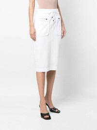 drawstring pencil skirt With a pencil silhouette, this skirt from Tom Ford is crafted from chalk white cotton. Its two zip pockets and drawstring elasticated waistband make it a casual piece. Made in Italy Composition Polypropylene 50%, Silk 50% SIZE & FIT Model measurements Height 5 ft 10 in(1.78 m) Bust/Chest 33.46 in(85 cm) Hips 36.22 in(92 cm) Waist 23.22 in(59 cm) FittingInformation This piece fits true to size. We recommend you get your regular size Cut for a slim fit Made with a mid-weight fabric Washing instructions Hand Wash