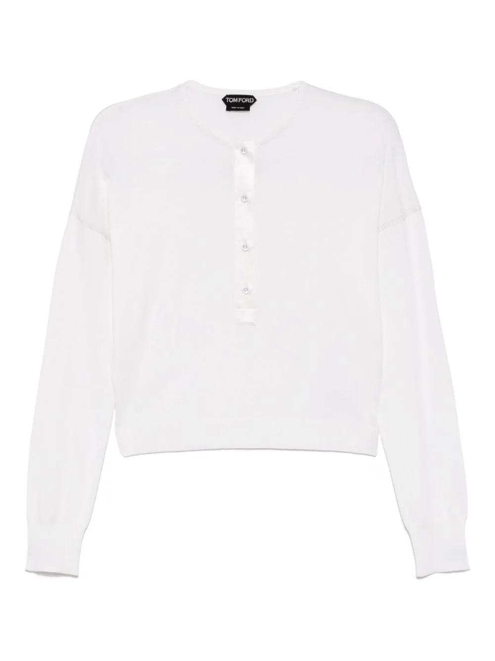 drop-shoulder Tops Highlights - White - Polo collar - Drop shoulder Made in Italy Composition Silk 55%, Cotton 45% SIZE & FIT Model measurements Height 5 ft 10 in(1.78 m) Bust/Chest 29.92 in(76 cm) Hips 34.64 in(88 cm) Waist 24.8 in(63 cm) FittingInformation Designed to be unstructured, offering a loose fit throughout Made with a lightweight knit, this piece offers some stretch Washing instructions Dry Clean Only