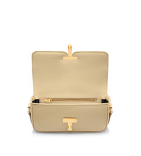 - T METAL CLOSURE WITH ENGRAVED LOGO - FLAP WITH FRAME DETAIL - ADJUSTABLE LEATHER SHOULDER STRAP - SHOULDER CARRY - 1 COMPARTMENT - 1 INNER ZIPPED POCKET - LINING: LEATHER - DIMENSIONS: 23 X 14 X 5 CM - MEDIUM STRAP DROP: 25 CM - 100% CALFSKIN