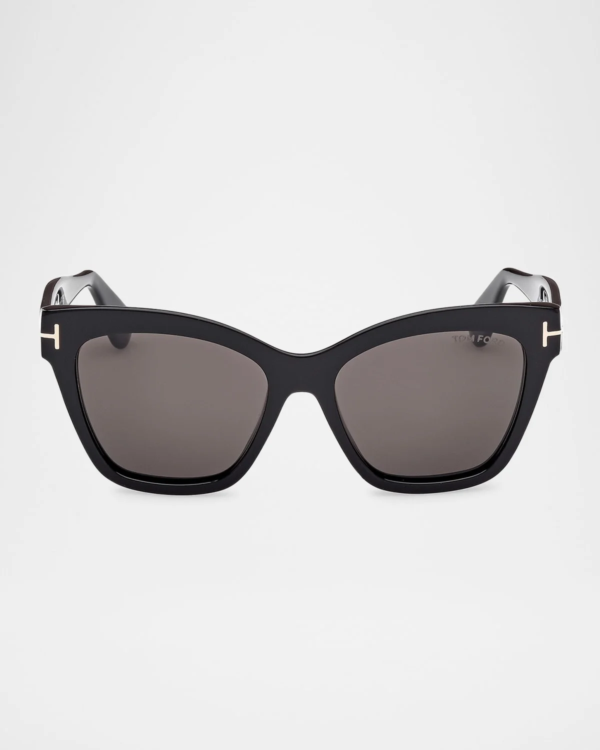 - TOM FORD "Elvira" cat-eye sunglasses - Eye/bridge/temple (in mm): 55-17-140 - Solid lenses - Saddle nose bridge - Thick arms - Curved temple tips with logo insert - Acetate - 100% UVA/UVB protection - Made in Italy - Proposition 65 warning for California residents